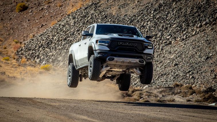Uh huh. Jumps. I’m behind the wheel of the 702-horsepower 2021 Ram 1500 TRX, one of the most extreme and overbuilt performance trucks Ram has ever produced. And as the wheels leave the ground and the cacophony is replaced with an eerie silence, I’m starting to understand just how insane this apex predator really is.