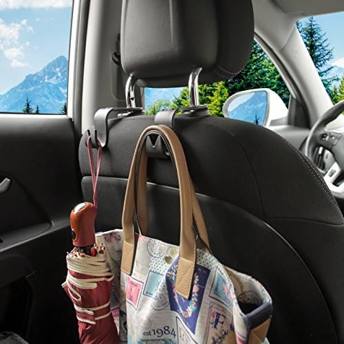 ✓ CAR INTERIOR ASSESORIES – KEEP YOUR SHIRTS WRINKLE-FREE: With these car hooks, don’t block your rear view vision by hanging your jackets or dresses over the back seat window. Thanks to these vehicle car headrest hooks, you can now enjoy a clear view and keep your shirts wrinkle-free, throughout your travels. Great car purse hook holder storage organizer, purse holder for car seat back organizer.