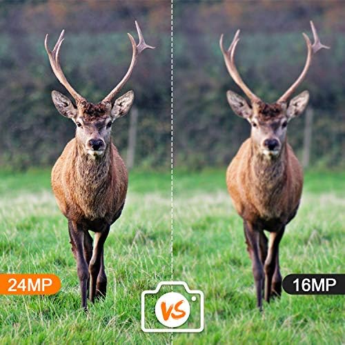 24MP Clearer Image and 1080P FHD Video Resolution : This trail game camera captures 24MP clear images and full HD 1080P video during day (color) and night (black and white), ensure every details will be captured. High resolution photos and videos will show you more super vivid wildlife activities.