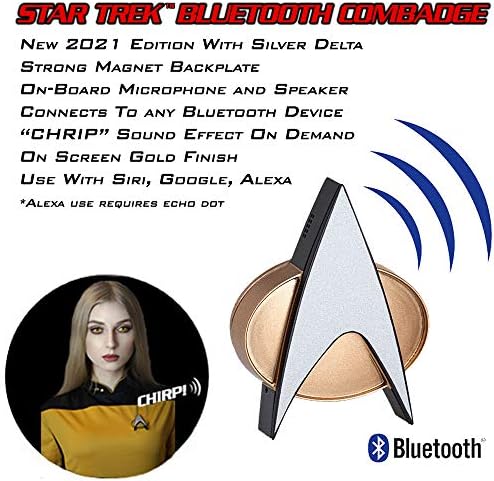 🎁 STAR TREK COLLECTIBLES & DAD GIFTS: Now with Bluetooth V5 for longer battery life and a new Silver Metal Delta plating to protect the paint against wear and tear the 2021 Star Trek TNG ComBadge is much more than a prop scaled replica… its everyday useful features make it the coolest Star Trek collectible in the Delta Quadrant. As seen in ThinkGeek & Mashable the Star Trek Combadge Chirps when you receive phone calls and when you use voice commands. The perfect high tech trek gift!