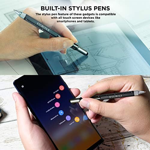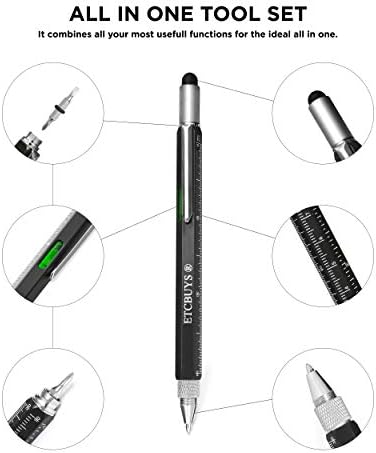 ALL-IN-ONE TOOL SET: Are you into cool gadgets? The ETCbuys gift for men and women can function as a ballpoint pen, stylus pen, flathead screwdriver, Phillips screwdriver, level tool (bubble tool) and 4 inch pocket ruler! It combines all your most useful functions for the ideal all in one.
