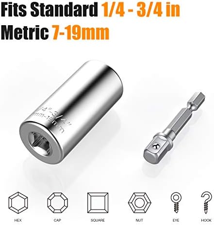 🎁MAKE SOMEONE FEEL SPECIAL – With special design, this universal socket can automatically adjust to any size or shape, suitable for standard 1/4 to 3/4 inches and metric 7mm to 19mm screws, nuts, and blots, meeting all needs. Compact and portable is easy for you to carry anywhere you want.