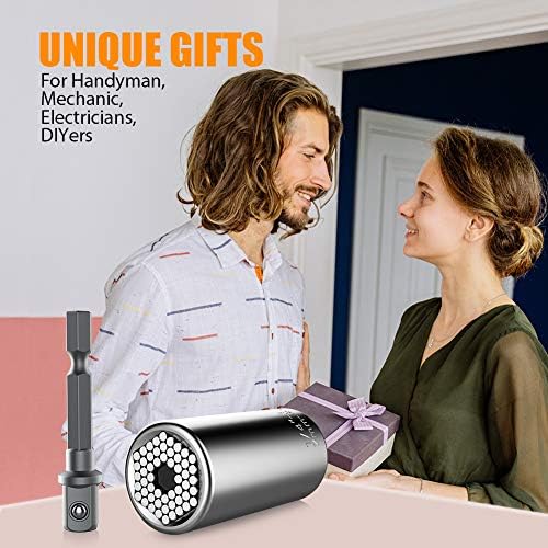 🎁GIFTS OPEN TO ALL AGES – A special tool gift for the person who has it all. Able to adjusts to grip hex nuts, hooks, eye and lag screws, bolt heads, and other various shape and sized objects, this universal socket wrench adapter attachment is perfect for home improvement, construction, carpentry, auto repair, and household maintenance. Perfect tool gift for Dad, Mom, Father, Mother, Men, Women,Boy, Son, Brother, Teacher,Husband, Boyfriend,DIY Handyman, etc.