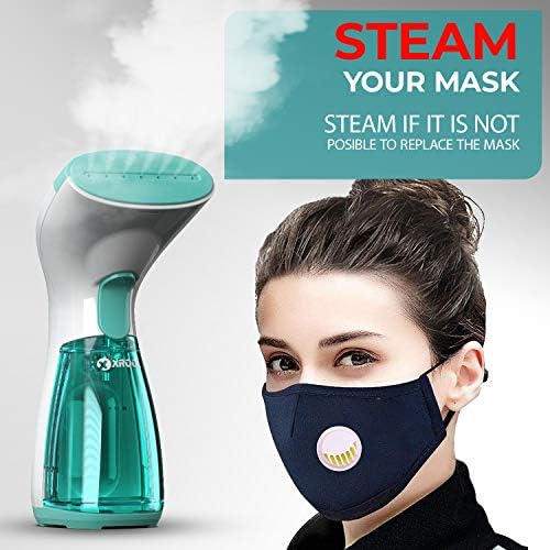 STEAM YOUR MASK Twice every day if you don’t have replacement mask. T for TRAVEL – Compact Handheld Steamer is Easy to tuck into a suitcase. It produces continuous steam for using while TRAVELING