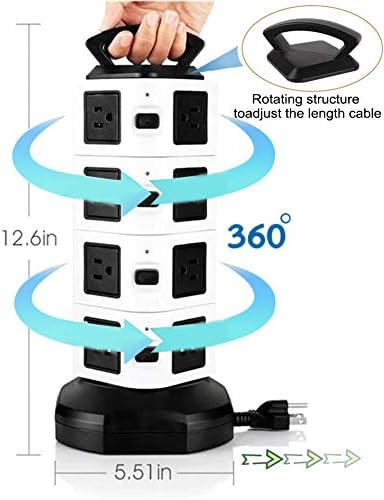 PORTABLE DESIGN:The 6.6ft cable at the bottom can be retracted counterclockwise or clockwise by rotating the tower to save space; the top has a durable handle for easy carrying; one switch per floor helps save power and makes it easy to control the Power Strip Tower.
