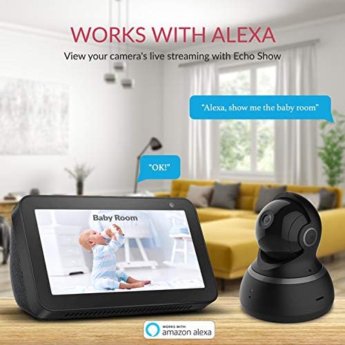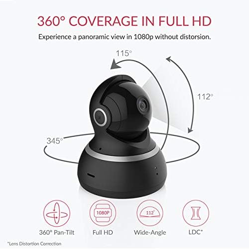 YI Indoor Wireless WiFi Security IP Camera, Smart Nanny Pet Dog Cat Cam with Night Vision, 2-Way Audio, Motion Detection, 360-degree, 1080p, Phone App, Works with Alexa and Google(Black)