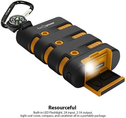 FosPower PowerActive portable external battery charger is designed to withstand drops, dirt, snow and even water. The battery pack is made from durable polycarbonate (PC) and ABS material.Powerful and Long Lasting Battery Pack