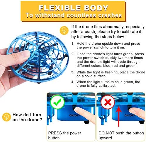 Durable Flexible Body: This flying ball drone toy is made of high grade Abs material which is lightweight and flexible, able to withstand countless crashes.