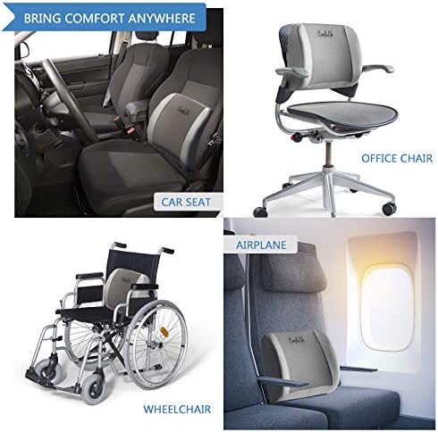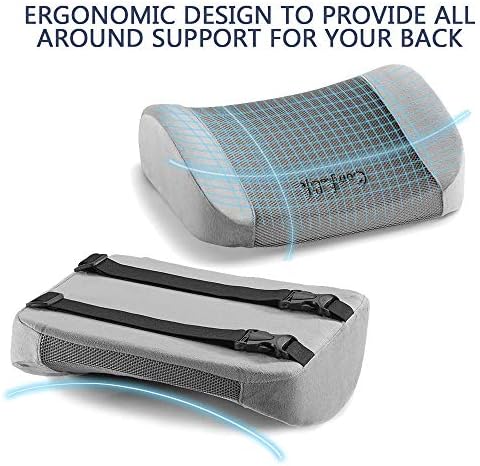Orthopedic Lower Back Support – Contoured memory foam cushion supports lumbar vertebrae discs and provides spinal relief. Helps maintain natural curve of lower spine as an office chair cushion, recliner or car seat cushion. This lumbar pillow is designed to help relieve pain while sitting and improve posture however it may not work for all conditions or completely eliminate all symptoms.