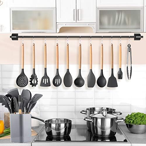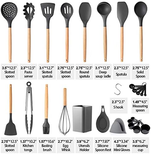 【100% COMPLETE COOKING SET】 – In order to better meet the buyer needs,we upgraded to 35 pcs kitchen utensils set Including Slotted/Solid Turner, Deep Soup Ladle, Spatula, Pasta Server, Skimmer, Slotted Spatula, Basting Brush, Egg Whisk/Separator, Slotted/Solid Spoon, Spoon Rest, kitchen Tongs and Holder. Also comes with 5pcs different size measuring cups,measuring spoons and 10pcs S-shaped Hooks. This set specifically designed to help you with all your food preparations.