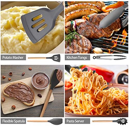 【SAFE,FOOD GRADE SILICONE】-100% brand new,made of high quality food-grade silicone,BPA Free,Nontoxic,allowing for safe and healthy cooking while protecting your coated cookware.It will probably be more durable ,last longer than any other plastic kitchen utensils.This silicone cooking utensils does not react with food or beverages, or produce any hazardous fumes, you don’t have to worry about the health of your families .This Kitchen Tools must be the best gift choice for mom.