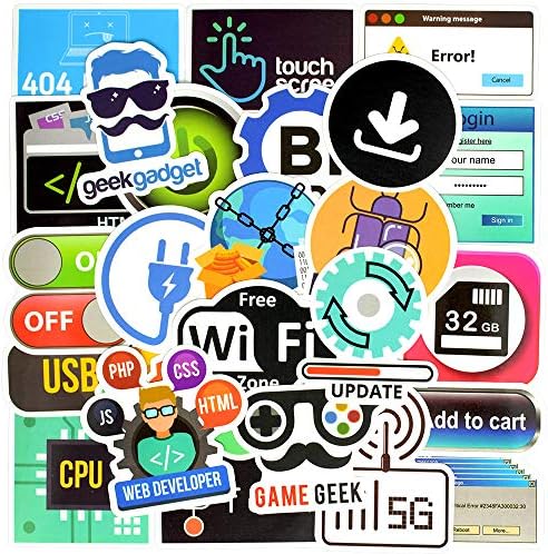 ⚡Geek stickers decoration for Water Bottle,Hydro Flask,Yeti,Tumbler,Laptop,Computer,Tablet,Phone Case,Headphones,Charger,Bluetooth Speakers,Notebook,Scrapbook,Bullet Journal,Binders,Luggage,Skateboard,Helmet,Bumper,Car,Bike,Motorcycle,Refrigerator,Desk and furniture ect.