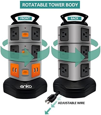 HUMANIZED DESIGN: Vertical outlet tower design provides enough space for each outlet, saves much space and cleans various cords in your working area comparing to traditional power strips; 6ft long cable wire at the bottom can be extended or retracted by rotating the tower, which saves space; A durable handle on the top is for your easy carrying; One switch at each layer helps save power and gives an easy control to the surge protector tower.