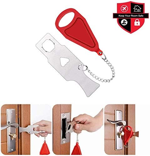 🔐 Portable door lock that installs in seconds without any tools required.contain Instruction manual gives you additional safety, security and privacy.The portable door lock can’t be open easily even if others have the key outside the room when you are sleep and rest.