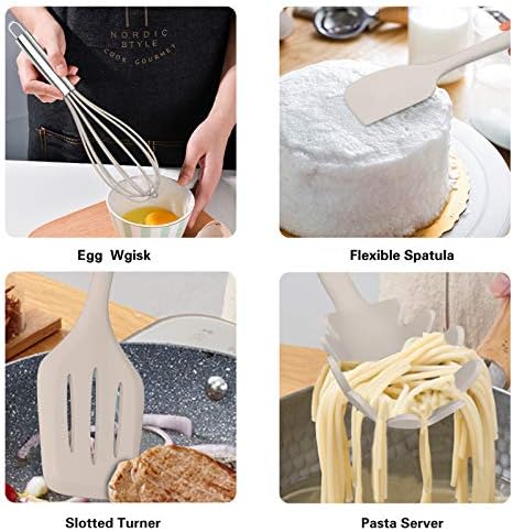 🌻【HIGH HEAT RESISTANT& AVOID THE MELT】Non-stick Cooking Utensils can withstand temperatures ranging from -22°F/-30°C to 392°F/200°C. Featuring non-scratch and softness, which extend the life of all your kitchen pans. No longer worry silicone will melt if accidentally leave these kitchen utensils in the pot for a while