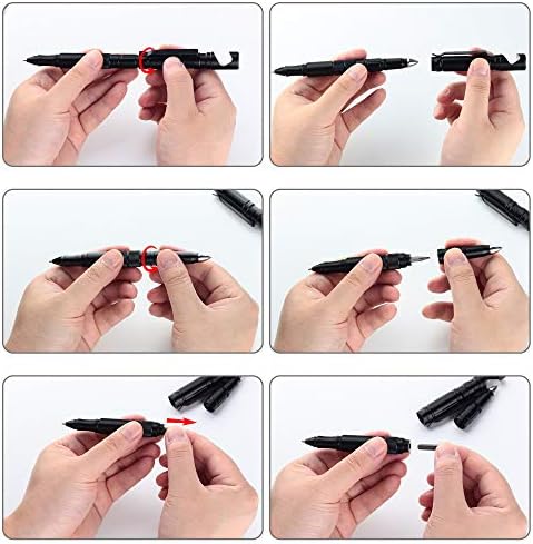 STANDARD REFILLS & SCREWDRIVER BITS: Standard refills are commonly in this tactical pen that you can get online easily and easy to maintain or replace refills. There are 2 extra refills in the box and 1 is preinstalled into the pen, each refill can write around 10,000 feet to meet your daily use. There are 4 screwdrivers bits made of Tungsten steel, durable and stable, including: 1 x Philips Ph1, 1 x Hex 3.0, Phillips Ph2, 1 x Slot 3.5 and 1 x Torx T10.