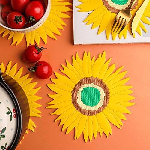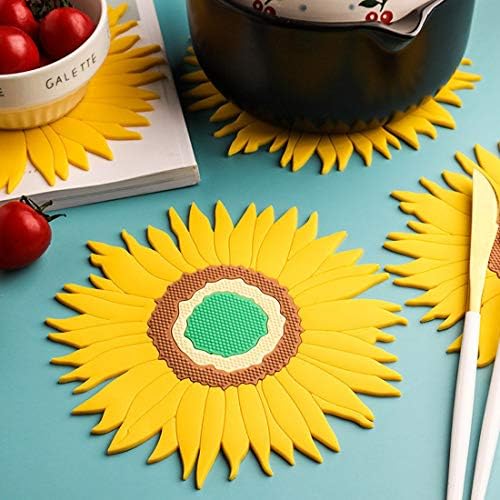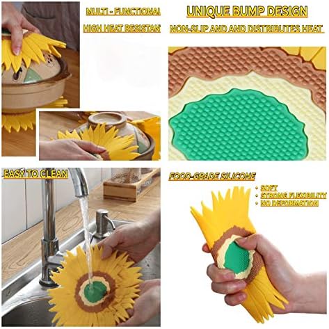 🌻 MULTI – FUNCTIONAL & UNIQUE SUNFLOWER DESIGN: Our durable pot holders are the ideal kitchen accessory! These practical silicone holders can be used as a pot holder, trivet mat, jar opener, spoon rest, or even a garlic peeler. 🌻Unique sunflower design- these non-slip beautiful hot pads for kitchen counter can not only protect your desktop but also can be used as tableware decoration for daily, which are good gifts for family and friends.🌻