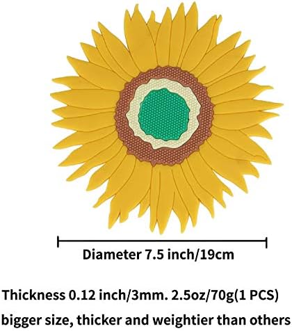 🌻 POT HOLDERS SPECIFICATION: Diameter 7.5inch/19cm, thickness 0.12 inch/3mm. 2.5oz(1item), set of 2 pack silicone pot holders, bigger size, thicker and weightier than other hot plate holders