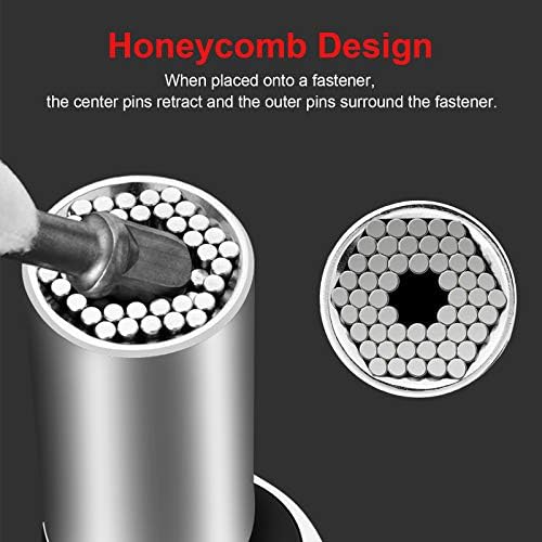 Universal socket, automatically adjusts to standard 1/4″ to 3/4″, metric 7mm to 19mm screws in any shape (except round) and any size.
