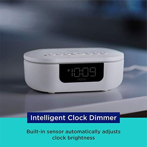Built-in sensor automatically adjusts clock brightness.