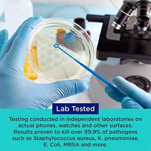 Independent Lab Tested on phones, watches and other surfaces proves at least a 99.9% kill rate on Staphylococcus aureus, K. pneumoniae, E. Coli, MRSA and more.