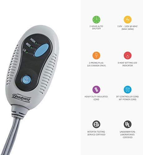NEAR ZERO EMF – Our electric blanket is engineered for lowest electromagnetic radiation possible. The heated element is designed and lay out in evenly space, which enables even warmth distribution. 100% UL certified for maxium safety. 12 Feet 6 Inches controller cord length with a 6 foot power cord length.