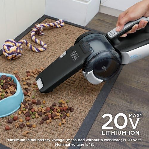 The 20V MAX Lithium Pivot comes with an onboard crevice tool and brush that are always at hand to tackle any mess, while a distinctive pivoting nose feature enables easy cleaning for all those hard to reach areas, such as under cupboards, above tall shelves, and in between couch cushions. Simply place the Pivot in its stand to charge. Finally, for a more thorough clean, simply remove the entire bowl from the unit and wash it in your sink. Filter flicker loosens embedded debris from filter to improve suction power. the bowl is easily removed and washable.