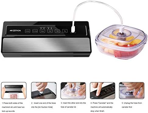 SEPARATED DESIGN: you can take off the upper lid to clean the sealer machine easily & safely. Compact size and lightweight design are easy to store and move around. Fits up to 12” width Geryon or other brand vacuum sealer bags and rolls.