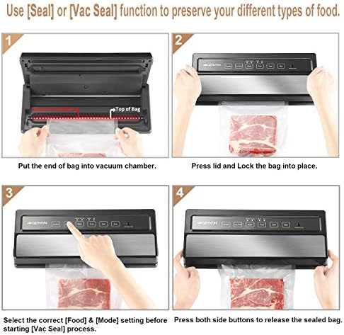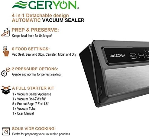 TWO SEALING MODES: Geryon vacuum food sealer is designed with two selectable modes to provide your food with best possible preservation based on your different types of food. You can also reseal bags of rolls, snacks that you only want to seal