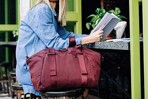 CAN BE LOCKED TO FIXTURES – Cut-resistant handle is reinforced with wire, and is detachable with the SnapNLock anchor system. Tote can be securely locked to tables or chairs to protect your phone, camera, tablet, wallet, passport, DSLR etc. from theft.