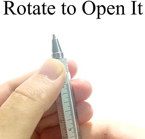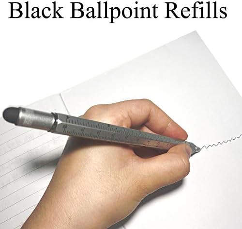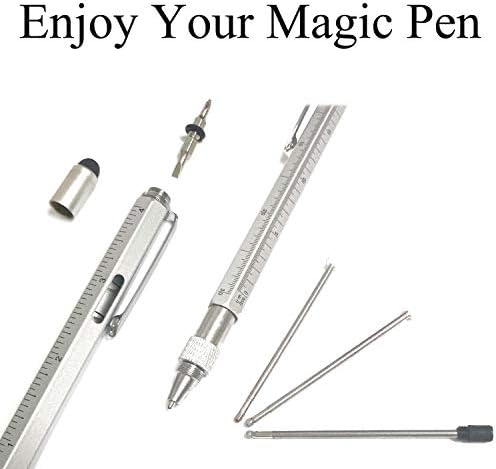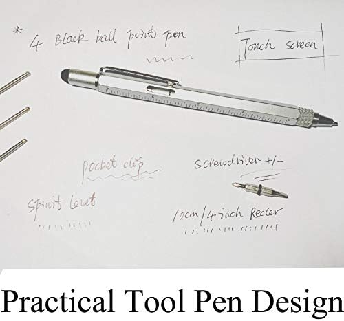 RENXING 6 in 1 Screwdriver Tech Tool Pen Multitool Ballpoint Pens 0.7mm Black Ink with 4 Refills Touchscreen Stylus cm inch Ruler Handy Levelgauge Pocket Gadget Kit for Men Women Girls Boys,New Silver