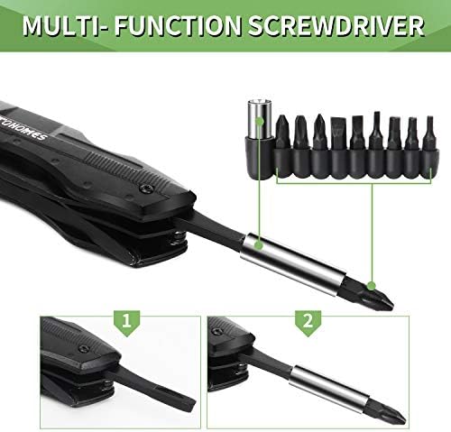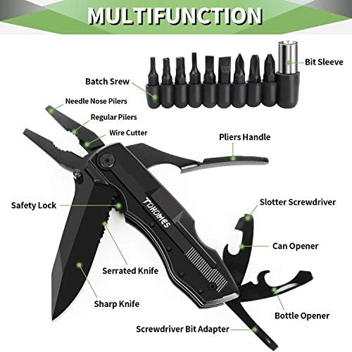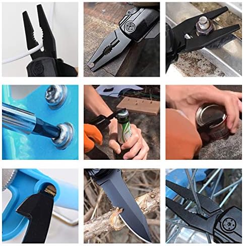 🔧Meet Your Multi-purpose Usage:Are you fed up with traditional single function tool ? choose our multi tool ,With our multi-purpose tool you have all sorts of equipment at hand in one practical tool.An array of essential tools includes a Knife Blade,Needle Nose Pliers,Regular Pliers,Wire Cutter,Can Opener,Bottle Opener,Screwdriver Bit Adapter and 9-in-1 Screwdriver set.