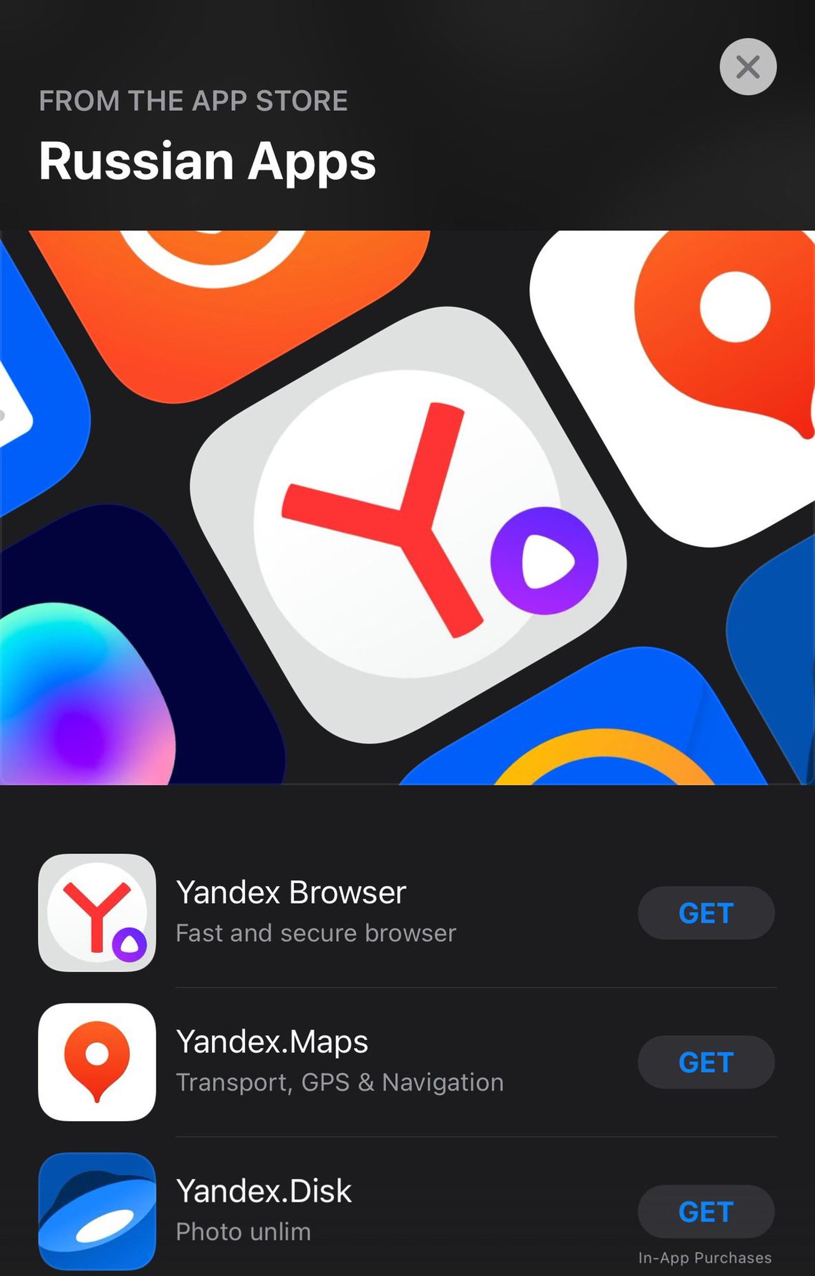 “In compliance with Russian legal requirements, here are some apps from Russian developers that you may download,” reads the text of the popup, which resembles an ‌App Store‌ “Today” view card.