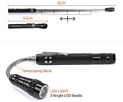 Strong Magnet on Both Ends: Both the head and the base of the flashlight Stick are integrated with a strong magnet so you can pick up metal components easily and telescope the light to the angle you need. Holiday Gift Guide, Gift Wrap Available. This is a cool tool gift choice for your husband, dad, brother, boyfriend at Christmas, New Year, birthday, Thanksgiving, Father’s Day, Valentine’s Day. And telescoping magnetic pickup tool also is a surprising man stocking stuffers.