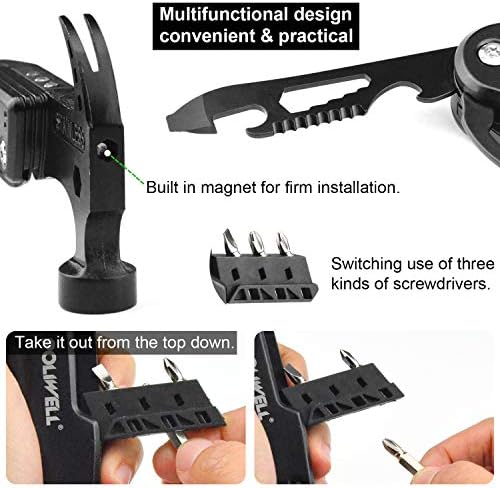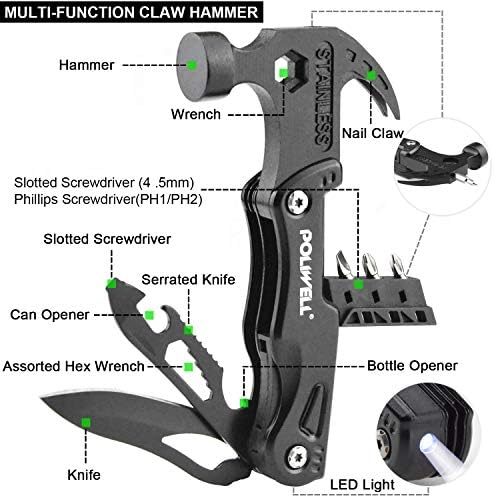【Multitool with LED Light】The new upgrade adds LED lighting so you can work in the dark, which can play a significant role if you lose power in the field. In addition to the function of claw hammer, our survival hammer multitool also have 12 functions such as knife, wrench, screwdriver, saw, bottle&can opener.