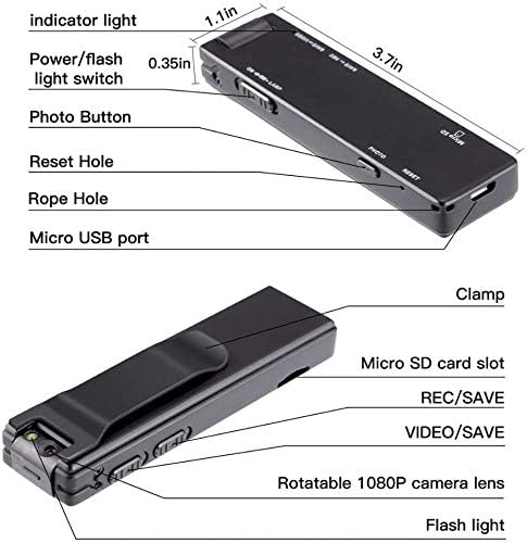[Motion Detection and Loop Recording]: Supports motion detection, the body camera starts recording when movement is detected. Saving storage space, keep valued records from useless records. Loop Recording:The camera supports up to 128GB micro SD card (not included); when the inserted micro SD card is full, the camera will overwrite the oldest video with the latest video; when the micro SD card is full, don’t worry about recording Will stop.