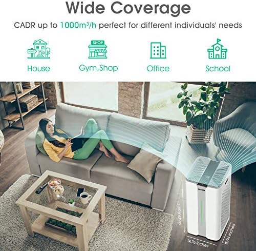 Large Coverage and All-round Cleaning: CADR 1,000, easily cleans up to 4,410 sq ft in one hour, 2,500 sq ft in 30 minutes, 1,102 sq ft in 15 minutes (CADR 1000). This allows you to run the unit at lower speeds and still easily clean the air in your rooms. Medium to large rooms between 262 square feet and 459 square feet. Such as bedrooms, big living rooms, hospitals, and offices.