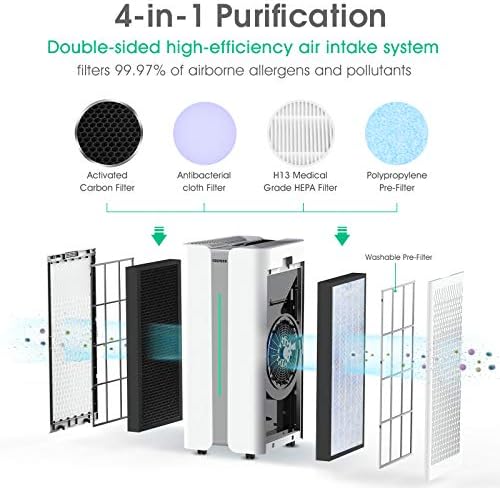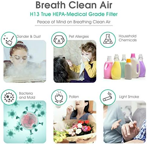 Dual H13 Ture HEPA Filters: Combined activated carbon and a true HEPA filter to deliver true HEPA performance capturing 99.97% of particulates and allergens larger than 0.3 microns, makes your air cleaner and fresher so you can breathe easier. Dual intake also creates better airflow.