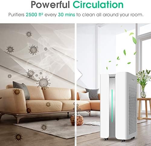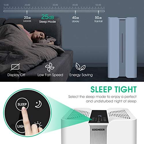 Smart and Wifi Control: Smart mode with 3 settings, Gocheer smart air purifier adapts to its surroundings. The lighting conditions are automatically adjusted according to the fan speed. If you don’t need the light, you can press and hold the button for 3 seconds to turn it off. Wi-Fi enabled for control through the Smart app compatible