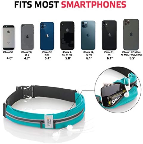 📲 SUPER STRETCHY MATERIAL: Our Cell phone holder for running has 2 separated, expandable and stretchy pockets (large and small) that fit your new iPhone XS MAX (also iPhone 5s, 6s, 6plus, 7plus, 8plus) and any other cell phone like Samsung s8, Galaxy s7, Note 8, Nexus 6p… Waist size from 27.5’’ – 40.5’’. Easily hold phone, keys, cards, money, even US passport.