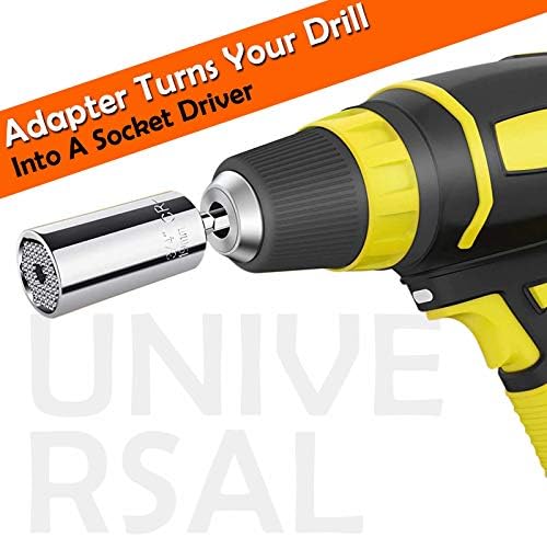 MULTI-FUNCTIONAL: This universal socket can be automatically adjusted to grip any screw eyes, hex nuts, lag screws, hooks, bolt heads, wing nuts, suitable for standard 1/4 to 3/4 inch and metric 7mm to 19mm screws, nuts and bolts, which can meet all your needs and save you time. And it is easy to connect with most electric drills, electric screwdrivers, and manual socket. Small and light, Easy to carry.