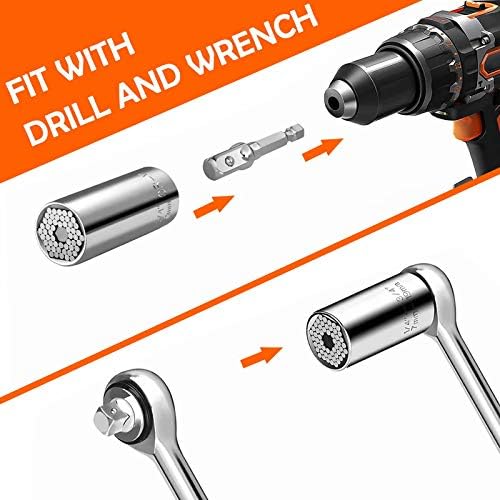 MAGIC DIY TOOLS FOR MEN & WOMEN: The universal sleeve handle is equipped with an electric drill adapter, which can be easily connected with electric drills, Electric screwdrivers and manual ratchet kits. The unique hand tool can automatically adapt to any shape of nuts and even irregular shapes without changing the socket. Small and light, Easy to carry.