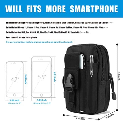 – Compact EDC molle phone pouch Made of durable, soft and splash-proof polyster Oxford fabric, it features zippered compact pouch with two pockets for small gadgets, outdoor tools and up to 6.2″ mobile phone.