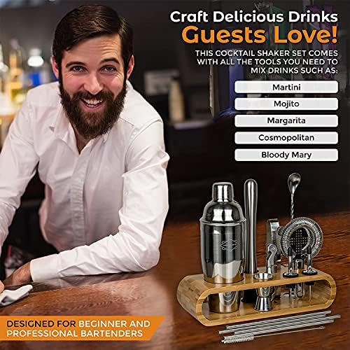 Craft Delicious Drinks Guests Love – Designed for beginner and professional bartenders. This cocktail shaker set comes with all the tools you need to mix drinks such as Martini, Mojito, Margarita, Cosmopolitan, Bloody Mary, and other great favorites.