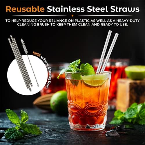 Complimentary Utensils and Accessories – Our Stainless-Steel Cocktail Shaker bundle includes four straight, stainless-steel reusable straws to help reduce your reliance on plastic as well as a heavy-duty cleaning brush to keep them clean and ready to use.