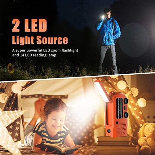 [ 14 Reading Lamps and 3W Super-Bright Flashlight ] Upgraded 14 Reading Lamps and 3W Ultra Bright Flashlight, Earns a critical time for you to get full preparation advance, keeping you and your family safe with this emergency weather radio. great for portable in household, garden, patio, outdoor, car, truck, camping, hiking, boating, etc