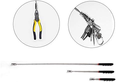 LONG TELESCOPIC HANDLE – Helps to grab objects in far to reach places. Retrieves nuts, bolts, screws