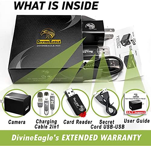 Advanced DIVINEEAGLE technology – your compact security camera in a small USB charger that charges your portable devices and records 1080P Full HD video with a viewing angle.