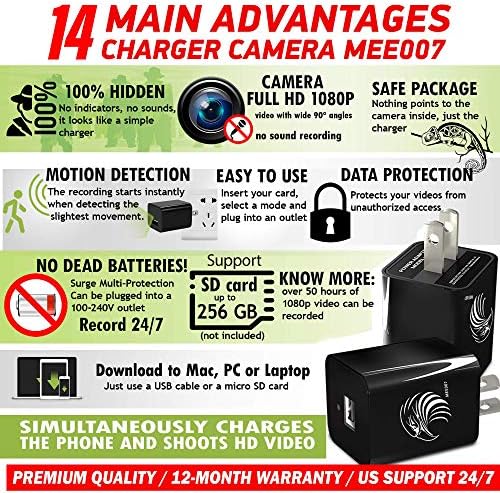 IQ Motion Detection with 130 points – This powerful USB wall charger camera adapter records in Full 1080P HD video when the slightest movement is detected for reliable, automatic use.