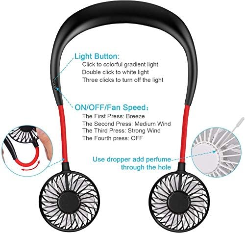 Hand Free Design: Neck fans portable is adopted with hand free design, you can hang the fan around your neck and take it everywhere, not will feel tired or uncomfortable when you hang the fan for a long time.
